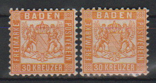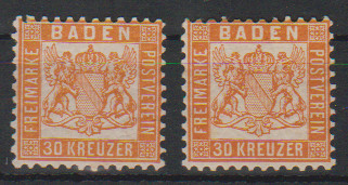 30 Kr. gelb- und dunkelorange, beide Farben, ungebr. Kabinettstücke, Fotoexp. Stegmüller für die "a"-Farbe. Mi. 220,-