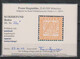 30 Kr. gelborange mit klarem NS "109" (Pforzheim), sauber ausgebessert, sign. Brettl. Mi. 3000,-