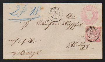 3 Kr. rosa auf Ganzsache 3 Kr. rosa, mit K2 "Jestetten" als Wertbrief nach Randegg, kl. Mgl.