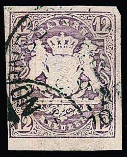 12 Kr. purpur, Kabinettstück mit ungewöhnlicher Entwertung durch Gerichts-Siegelstempel, sign. Stegmüller