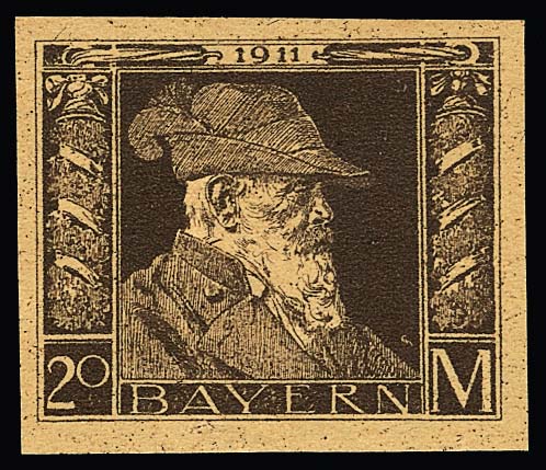 1 bis 20 Mk. Luitpold je als geschnittene Probedrucke auf Kanzleipapier, Höchstwert sign. Helbig