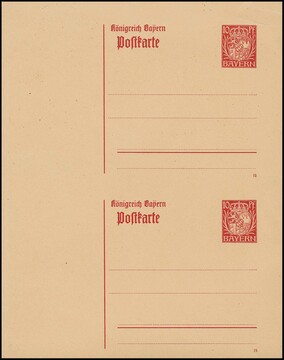 Ganzsachenkarte 10 Pfg. Wappen, geschnitten, Jahreszahl "18", im Paar zusammenhängend ungebraucht. Sehr selten, da natürlich die Karten vor Auslieferung an die Postämter auseinander geschnitten werden mussten