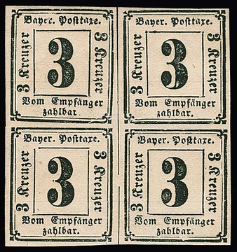 Portomarke 3 Kr. schwarz, ungebrauchter Viererblock (Gummi rückseitig etwas bräunlich), Mi. 900,-