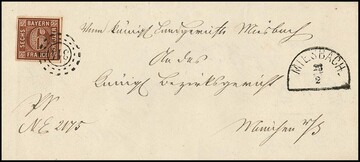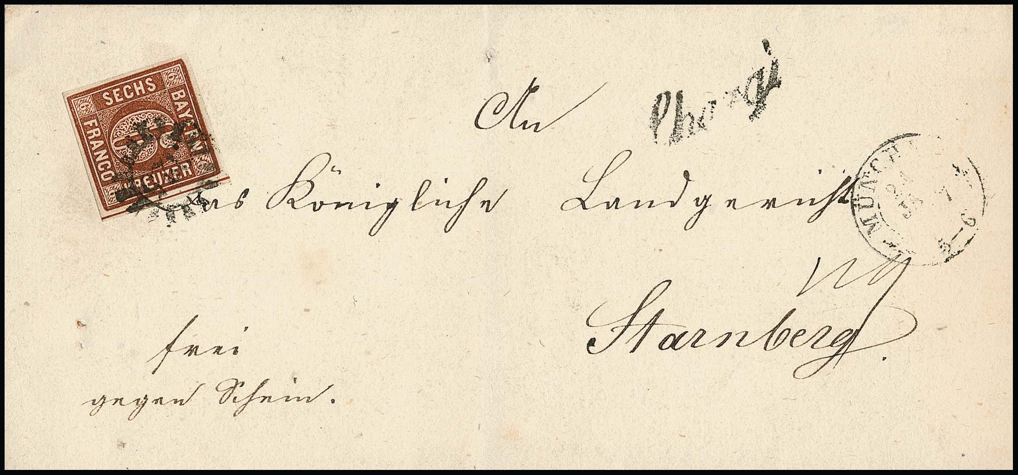 6 Kr. braun auf Kabinett-Chargé-Brief aus München mit seltenem OPA-Neben-K2