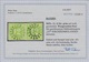 6 Kr. blau, links mit 13,5mm breitem Zwischensteg und vollständigem Ansatz der Nebenmarke, oMR "356" (Nürnberg) und kleine Federzugteile im Steg. Oben links winzig berührt, sonst gut. Von der Nr. 10 existiert nur ein einziges (!) vollständiges gestempeltes Zwischenstegpaar (sogar auf Brief, letzter Zuschlag 130.000,- Euro in 2022) und keine handvoll Exemplare mit Zwischensteg-Ansätzen. Attest Sem