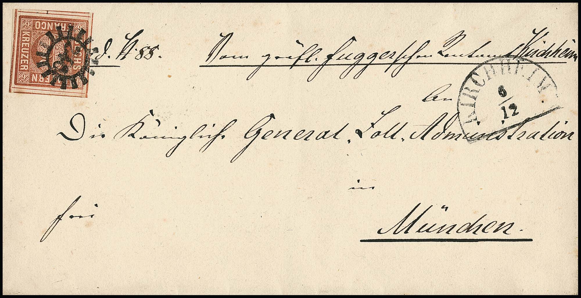 6 Kr. braun auf Kabinett-Chargé-Brief aus München mit seltenem OPA-Neben-K2