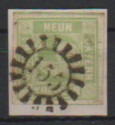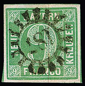 9 Kr. bläulichgrün auf Kabinettbriefstück mit vollem gMR "155" (Kempten), sign. Schmitt