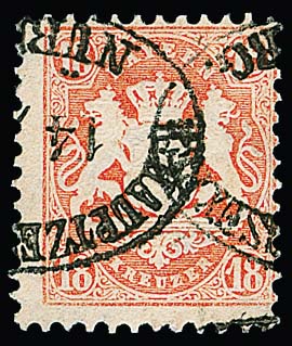 18 Kr. mattziegelrot, Kabinettstück mit Ovalstempel des Hauptzeitungsamtes Nürnberg, sign. Schmitt, Bühler
