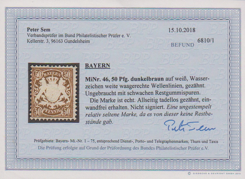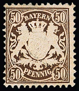 50 Pfg. dunkelbraun tadellos ungebraucht mit Restgummispuren. Eine sehr seltene Marke, von der es keine Restbestände gab, Fotoexp. Sem. Mi. 1000,-