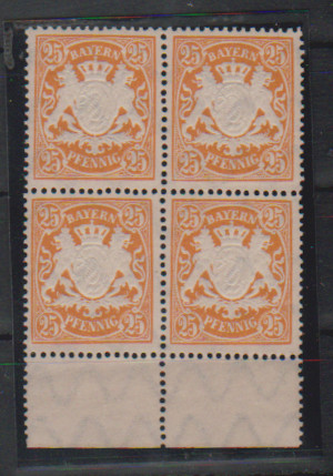 25 Pfg., gutes mattrosa x-Papier, postfrischer Unterrand-Viererblock, sign. Helbig. Mi. 280,- +