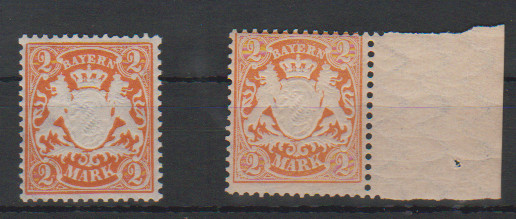 2 Mk. orange, beide Papiere, je postfrisch, sign. Helbig bzw. Sem. Mi. 260,-