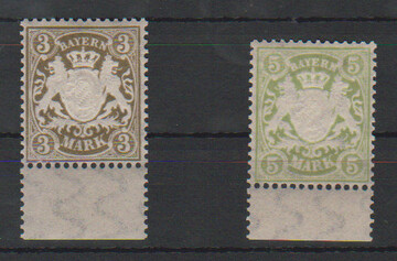 3 und 5 Mk., je postfrische Unterrandstücke auf y-Papier, Mi. 400,-