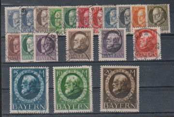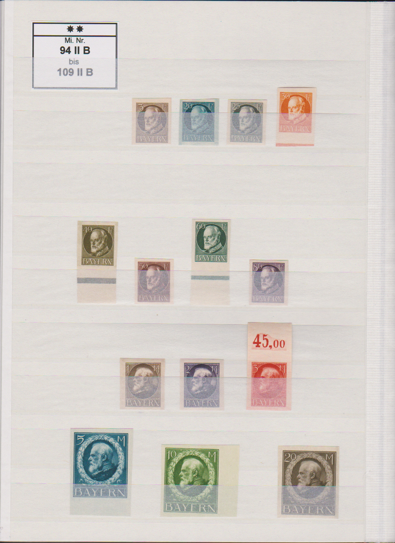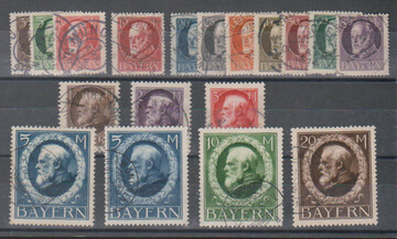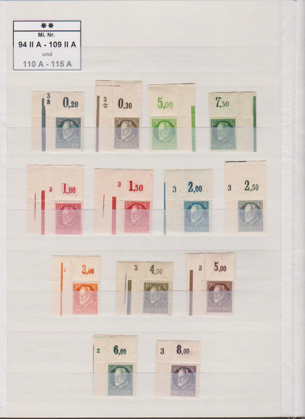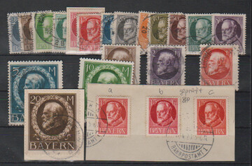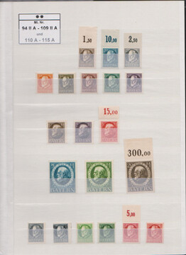 Ludwig Kriegsdruck überkomplett, gez. postfrisch und gestempelt, einmal auch als Bogeneckenserie, gestempelt auch mit gepr. Unterfarben wie Nr. 115Aa-c, 108IIaA postfr. und gest., geschnitten mit den Mark-Werten komplett, alle geprüft. Mi. über 1300,-