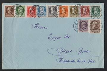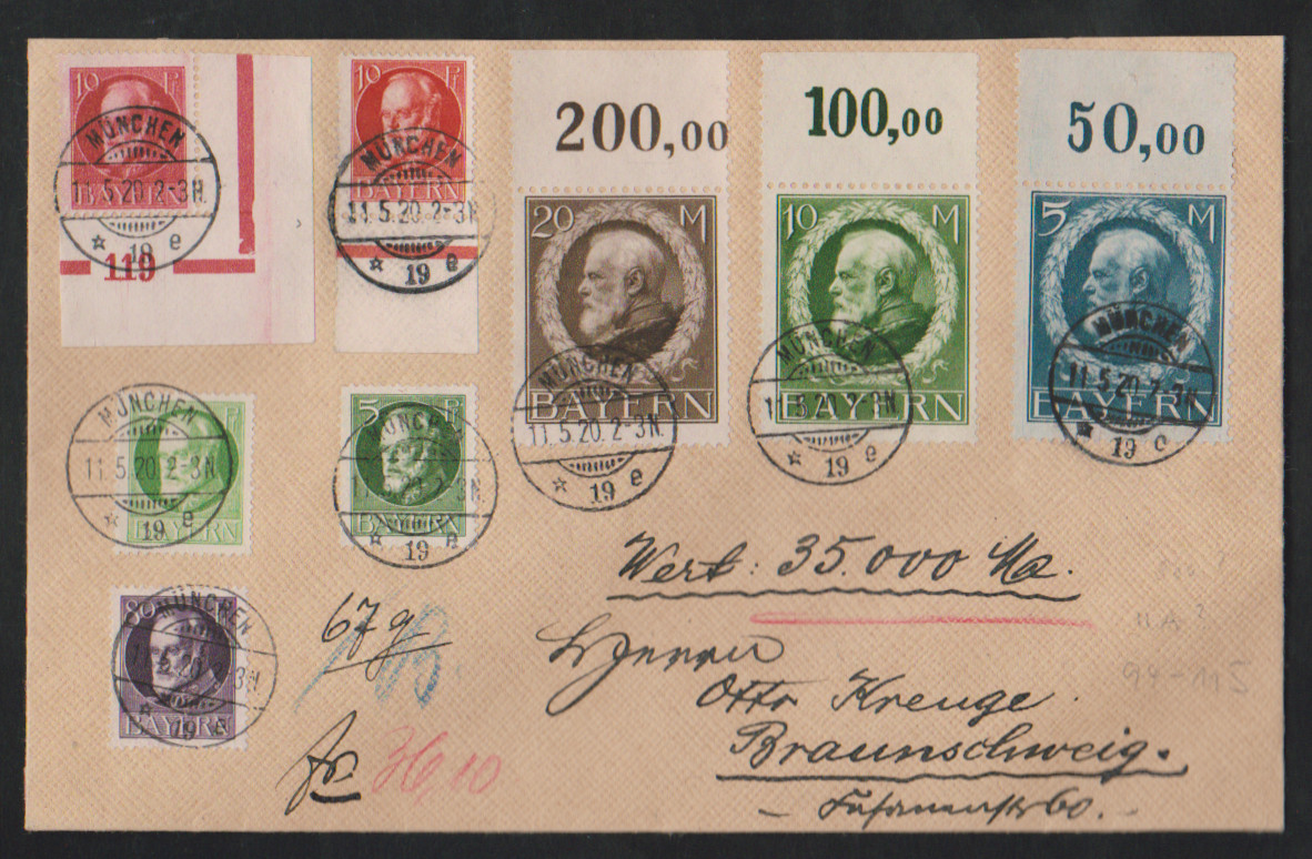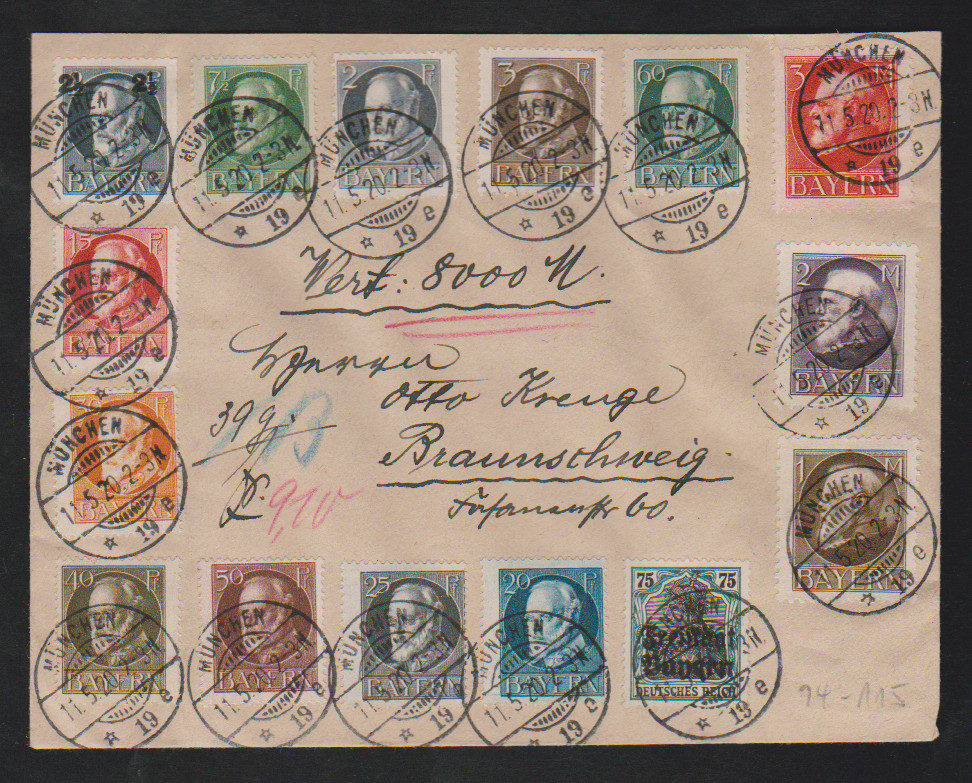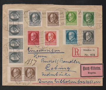 Ludwig geschnitten, 14 Werte auf Expreß-R-Brief aus München, Mi. lose 243,-