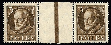 3 Pfg. Ludwig im seltenen waagerechten, ungebrauchten Zwischenstegpaar (aus unzertrenntem Druckbogen)