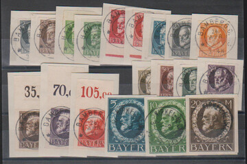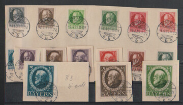 Ludwig geschnitten einheitlich auf schön gestempelten Briefstücken ("Wunsiedel"), sign. Infla. Mi. lose 367,- +