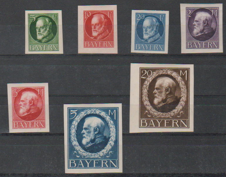 Ludwig Friedensdrucke ungezähnt: 5, 10, 20 Pfg. sowie 2, 3, 5 und 20 Mk. Wichtiges gepr. Mi. 340,-