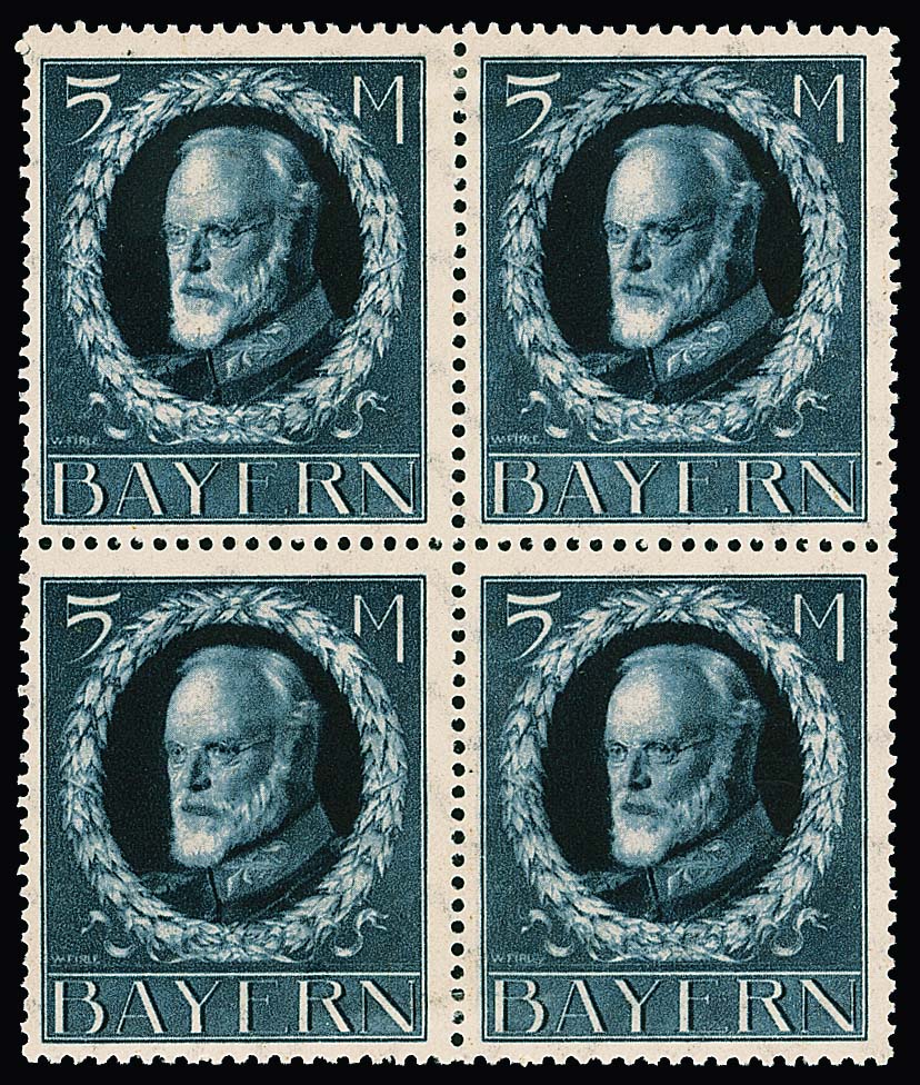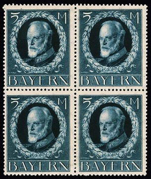 5 Mk. Ludwig, schwarzblau, Essay in abweichender Zeichnung im ungebrauchten Viererblock, siehe Foto