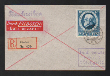 5 Mk. Ludwig Friedensdruck auf Expreß-R-Brief aus München, sign. Helbig
