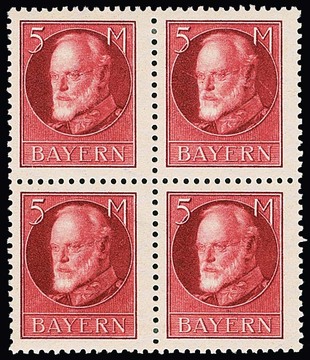 5 Mk. Ludwig, Königsessay in rot in abweichender Größe im ungebrauchten Viererblock