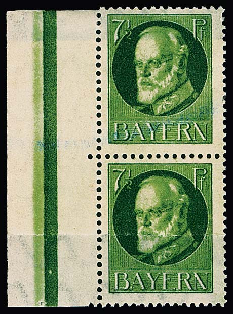 7 1/2 Pfg. Ludwig, senkrechtes postfrisches Paar, beide Marken mit Abart "geklebte Papierbahn", Michel nicht gelistet