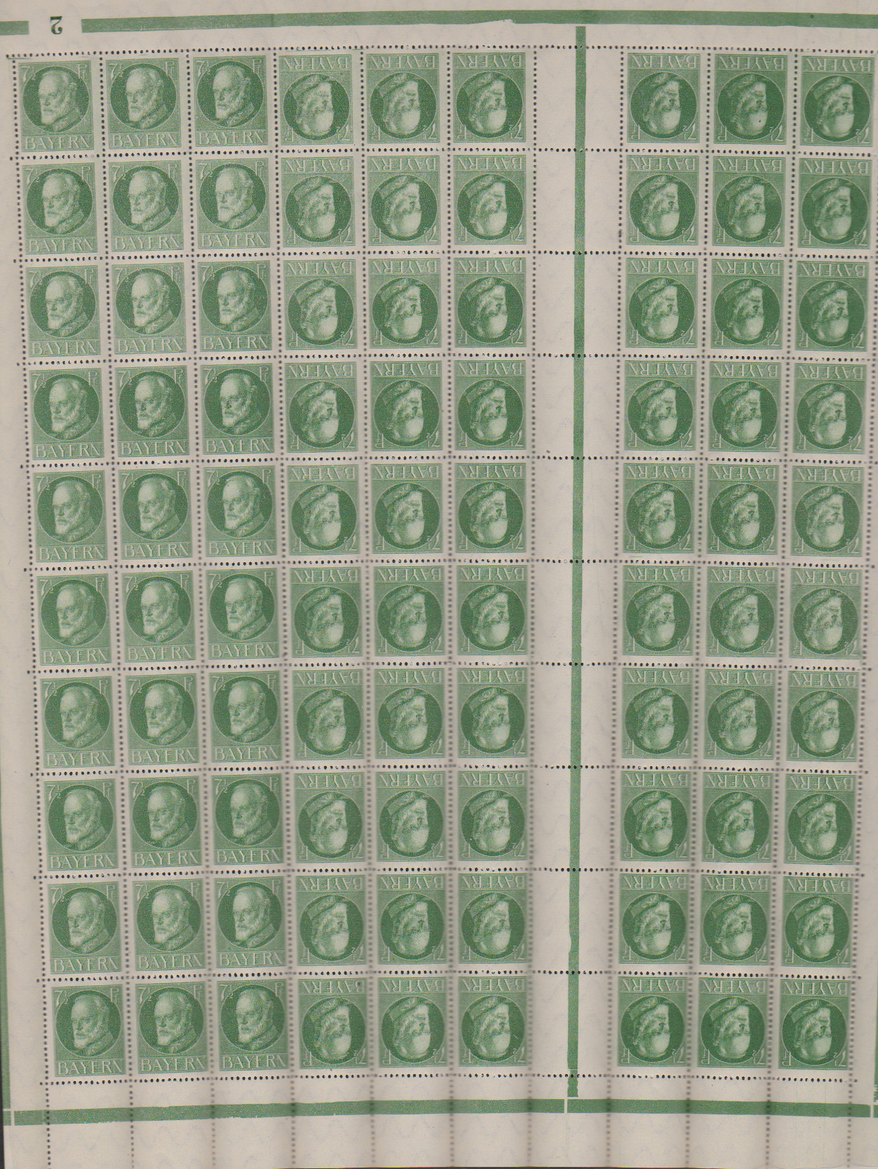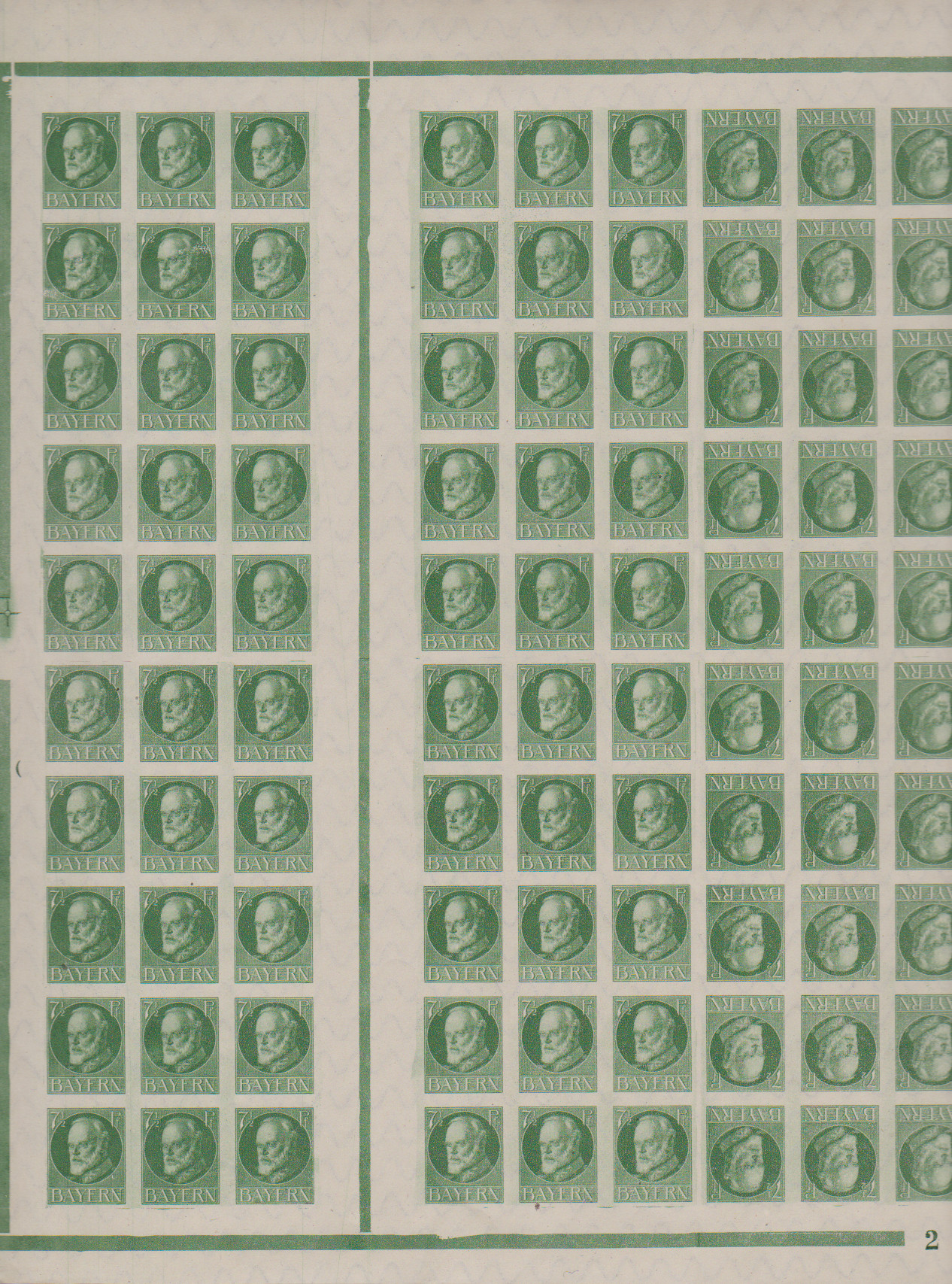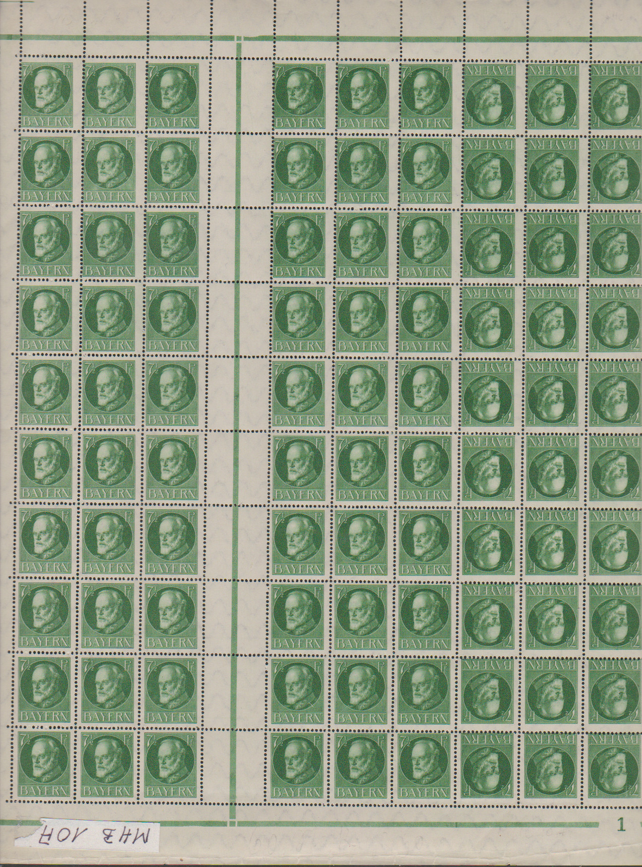 7 1/2 Pfg. Ludwig, Markenheftchenbogen 10A mit Platten-Nr. "1" und "2" postfrisch. Mi. 700,-