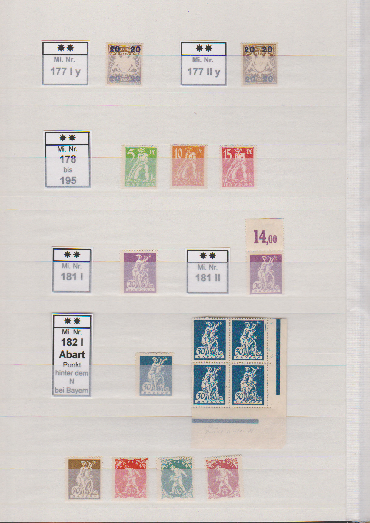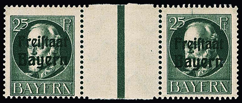 10, 15, 25, 30 u. 60 Pfg. "Freistaat Bayern" auf Ludwig je in waagerechten Zwischenstegpaaren (zwei postfrisch) aus unzertrennten Druckbögen