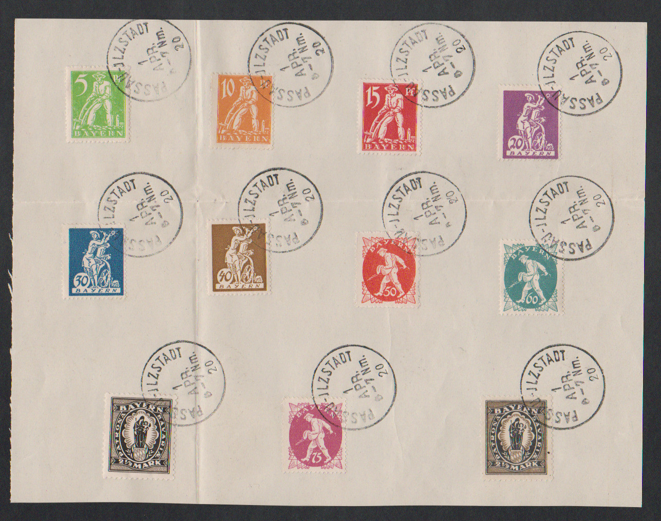 Freistaat Bayern auf Ludwig geschnitten komplett gestempelt, sign. Infla. Mi. 730,-