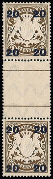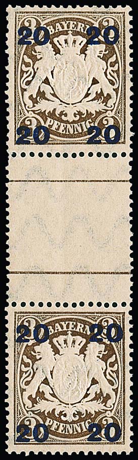 20 a. 3 Pfg., gute Aufdrucktype I, im senkrechten postfrischen Zwischenstegpaar, Mi. 1200,-