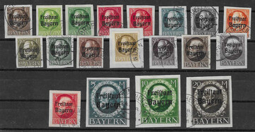 "Freistaat" überkomplett gest., dabei von der 5 Pfg. ein im Michel nicht gelistetes HAN-Paar, Ludwig gest., gepr. Mi. 781,- +