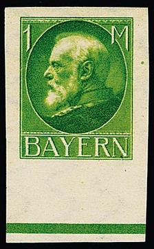(1,25 M.) a. 1 Mk. Ludwig geschnitten, Abart "ohne Aufdruck" als ungebrauchtes Unterrandstück, sign. Helbig. Mi. 500,-
