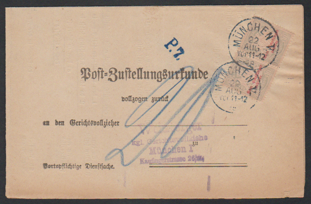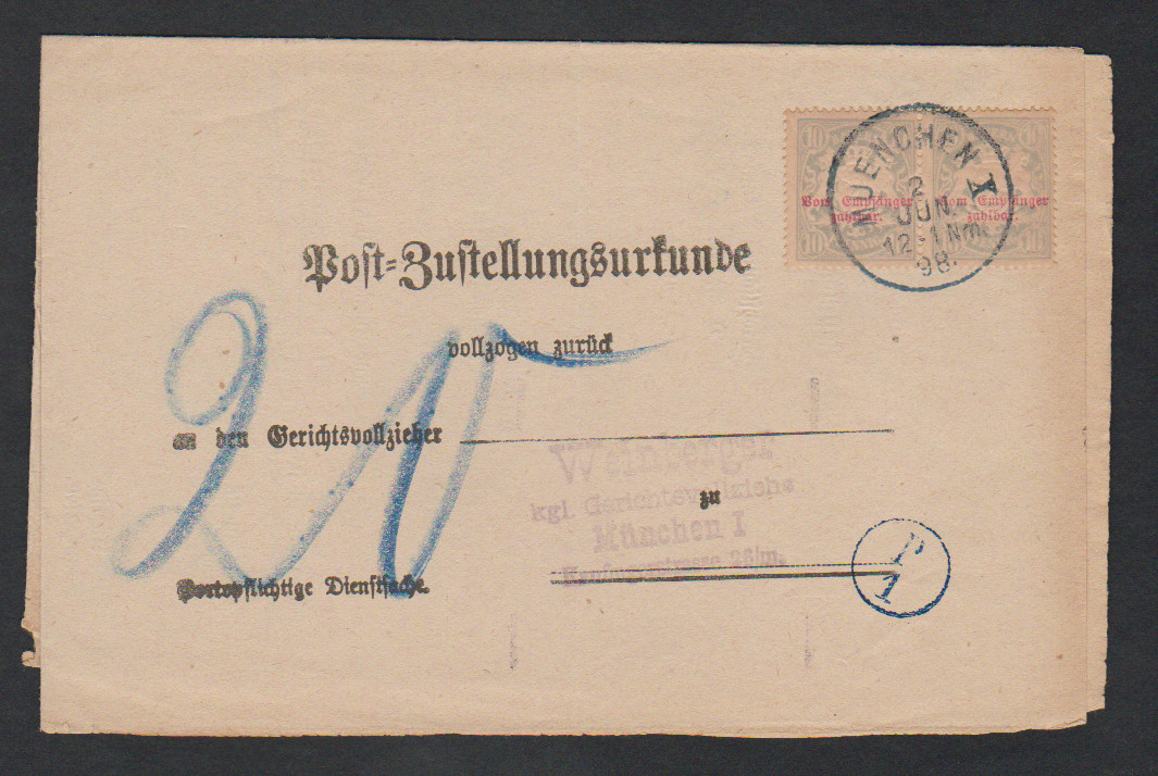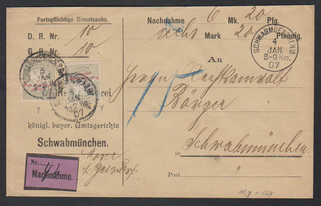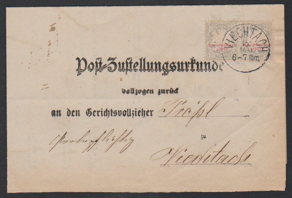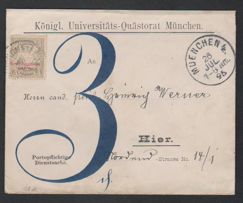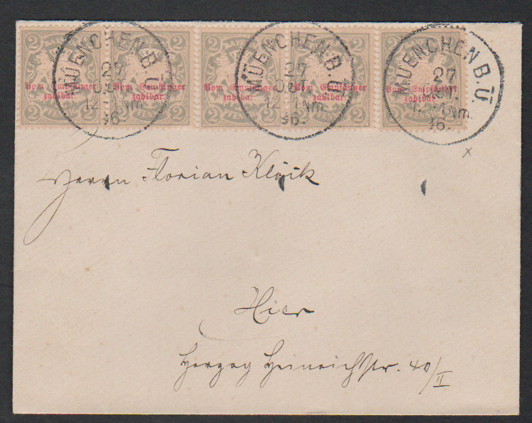 Portomarke 3 Pfg. als tadellose Einzelfrankatur auf schön gestempeltem Brief von Straubing in den eigenen Landbezirk nach Kirchroth, beim Brief fehlt rs. ein Klappenteil, sign. Brettl. Mi. 500,-