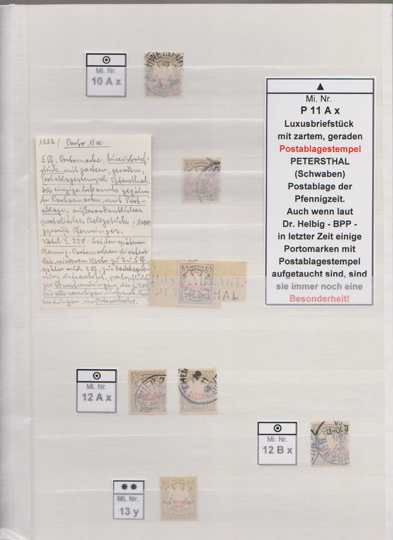 Portomarken überkomplett gestempelt, vieles geprüft, inkl. P4III, 5/6 postfrisch, 7 ungebraucht, 7-9 gest., Paar mit 9I gest., 10-12A gest., P12A im Paar auf Zustell-Urkunde. Mi. 1880,- ++, so vollständig selten angeboten mit den vielen geprüften Stücken