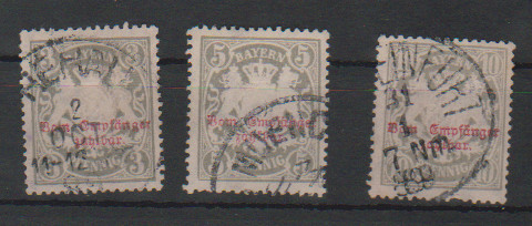 Portomarken 3, 5 und 10 Pfg., je gute Zähnung, tadellos gestempelt, sign. Helbig bzw. Sem. Mi. 330,-