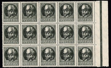 Portofreiheitsmarken für Kriegsbeschädigte, 5, 15 und 25 Pfg., je postfrischer 15er-Block vom rechten Rand, Mi. 2625,- lose ++