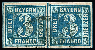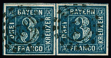 3 Kr. blau, Pl. III, ausgefüllte Ecken, Kabinettpaar mit gMR "325", sign. Stegmüller