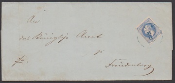 1/2 Gr. schwarz einzeln auf Pracht-Briefsammlungsbrief, die Marke mit blauem Federkreuz entwertet nebst hs. Aufgabe "Rethen 17/8"