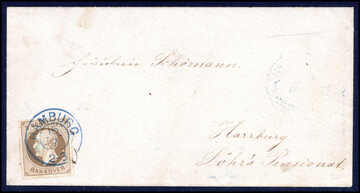 3 Gr. ockerbraun auf Prachtcouvert mit K2 "Hamburg" nach Harzburg/Braunschweig, Mi. 180,- +