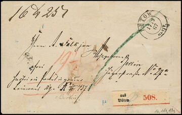 2 Sgr. blau und zweimal 3 Sgr. ockerbraun, Prachtstücke auf Paketbegleit-Couvert (min. Randriß) mit Ra2 "Gramzow"