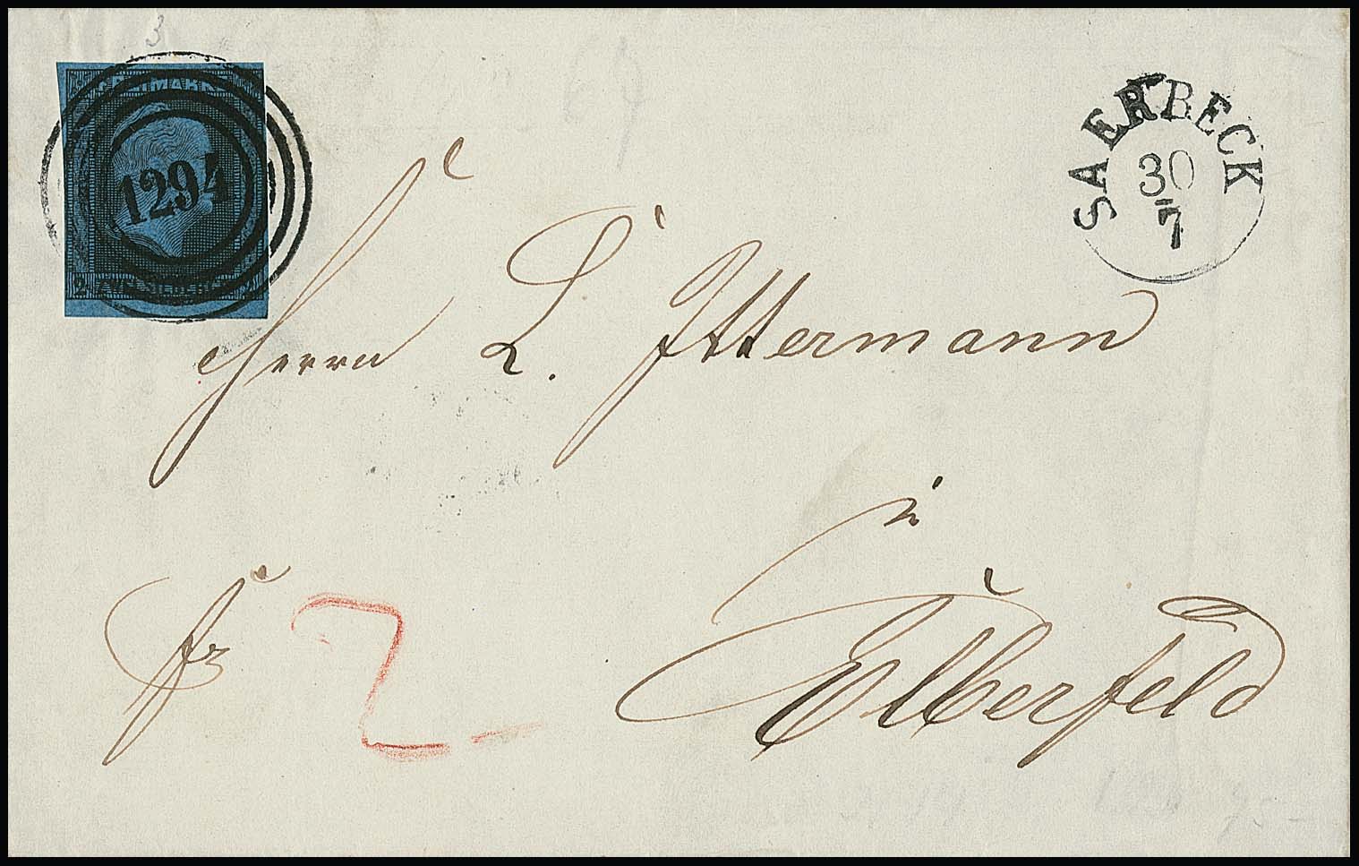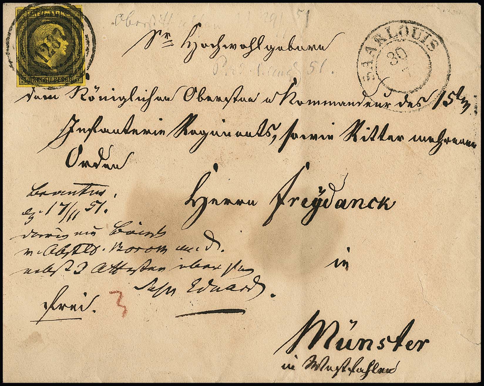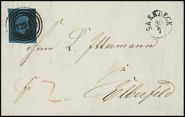 "1294" sehr klar nebst vorphil. K1 "Saerbeck" auf Kabinettbrief 2 Sgr., auf Brief sehr seltener NS der OPD Münster (Feuser + 800,-)