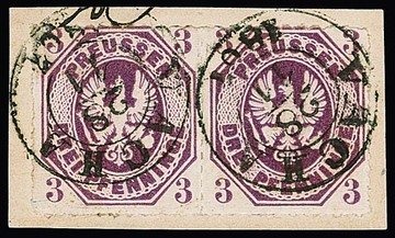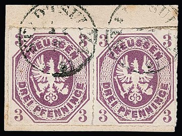 3 Pfge. rotlila im Paar auf Kabinettbriefstück mit besserem nachverw. Taxis-Fingerhut-K1 "Stadtsulza", Attest Wasels. Mi. 1000,-