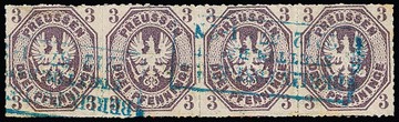 3 Pfge. graulila, Pracht-Viererstreifen (re. Marke ganz leichte Tönung) mit Ra3 von Berlin, Mi. 500,-