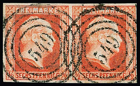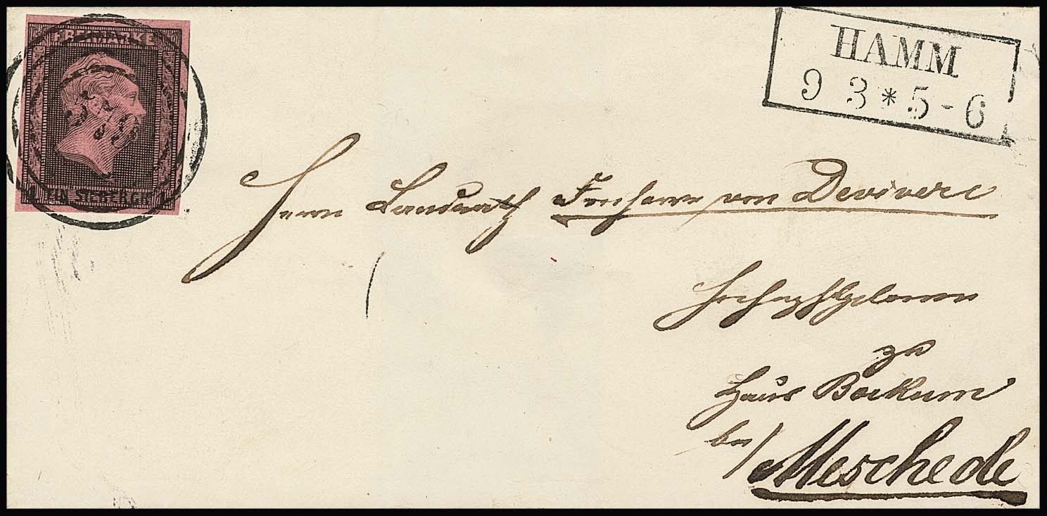 "579" nebst Ra2 "Hamm" auf sechs Briefen 1 Sgr., eine angeschnitten (offensichtlich Nr. 2d), sonst gut geschnitten