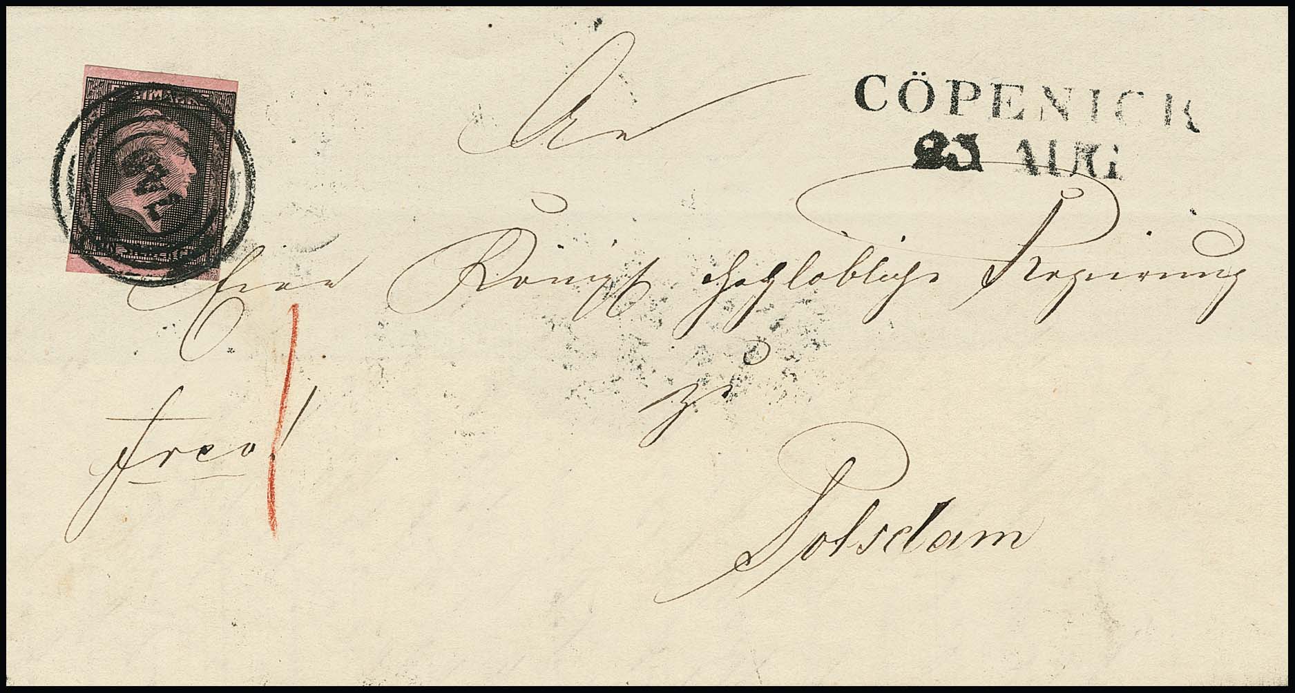 "749" nebst vorphil. L2 "Cöpenick" klar auf Teilbrief mit 1 Sgr. (links winzig ber.)