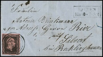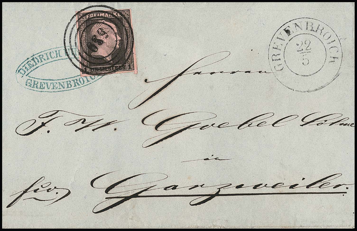 "539" nebst K2 "Grevenbroich" klar auf Prachtbrief 1 Sgr. 1851