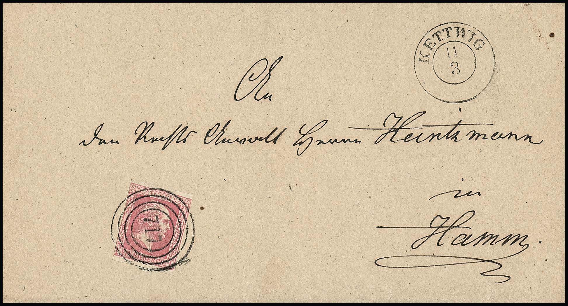 "717" nebst K2 "Kettwig" sehr schön klar auf Brief mit ber. 1 Sgr.