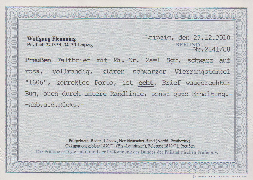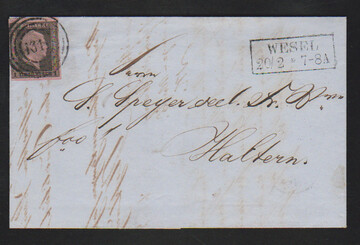 "1606" nebst Ra2 "Werden" klar auf Prachtbrief 1 Sgr. (nur im Unterrand ausserhalb leichter Bug), Fotoexp. Flemming, guter Rheinland-NS, Feuser + 300,-