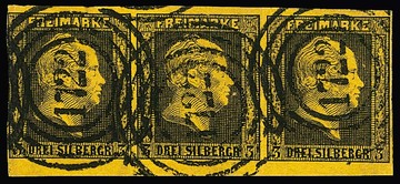 "1722" (Züllichau) klar auf Unterrand-Dreierstreifen 3 Sgr. (links ber.)