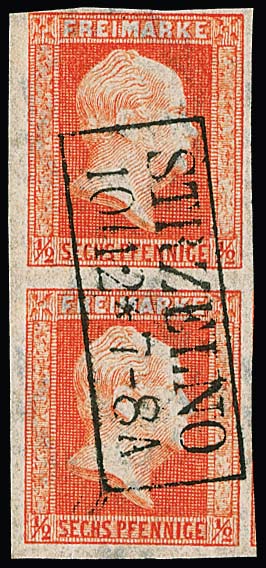 1/2 Sgr. ziegelrot, senkrechtes, noch voll- bis überrandiges Kabinettpaar mit Ra2 "Strzelno"