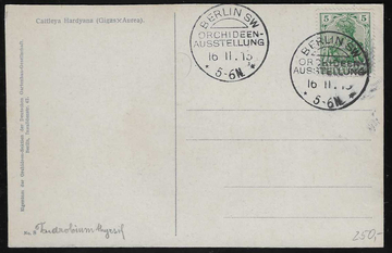 "Berlin SW Orchideen-Ausstellung", 16.11.15, seltener früher SST klar auf Blanko-Ansichtskarte (mit entspr. Motiv) mit 5 Pfg. Germania